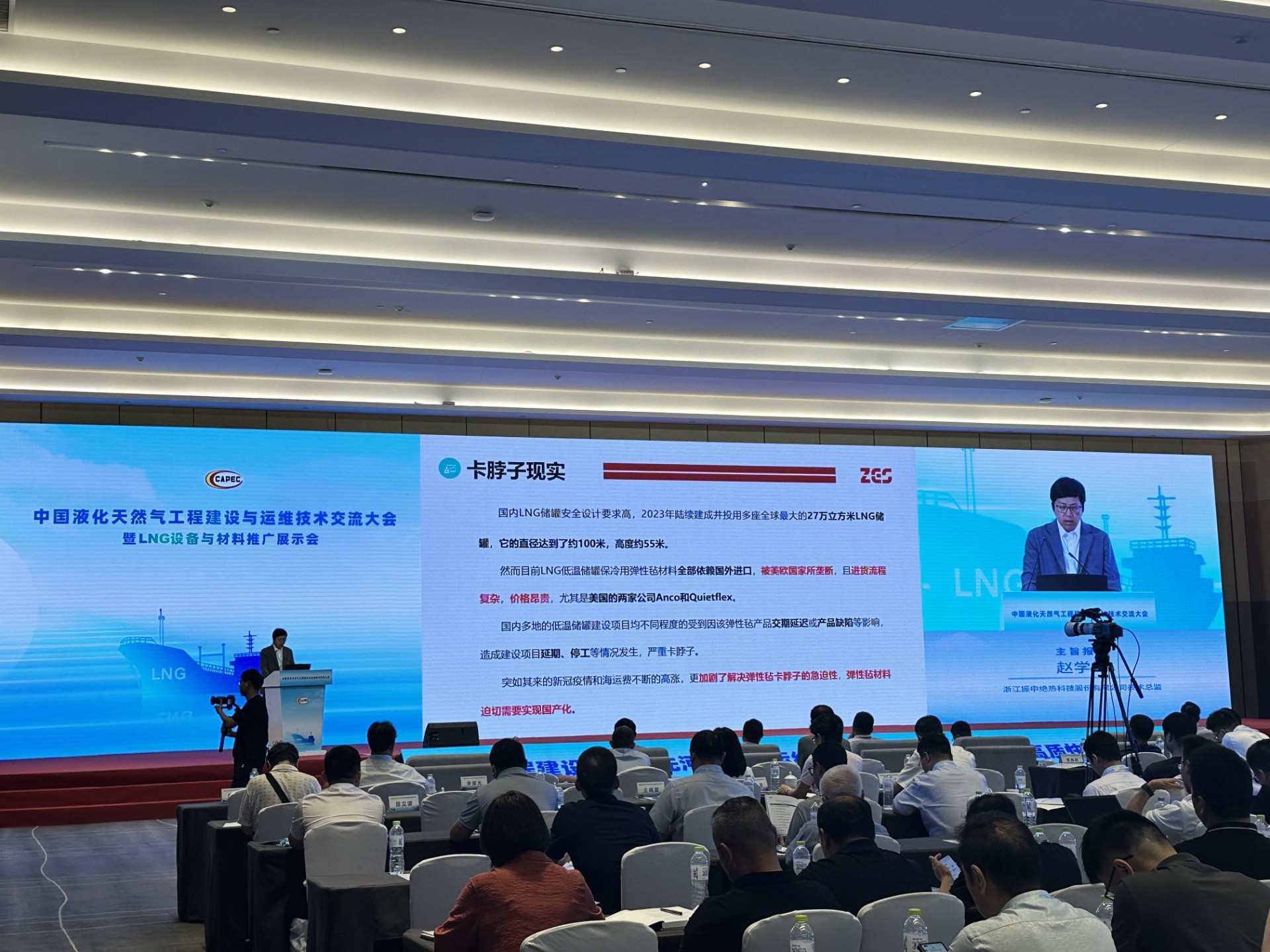 振申絕熱受邀攜帶最新的保冷材料和解決方案出席此次盛會。公司技術總監趙學鋒圍繞振申彈性氈助力大型低溫液化氣儲罐全保冷系統國產化為主題作精彩演講。