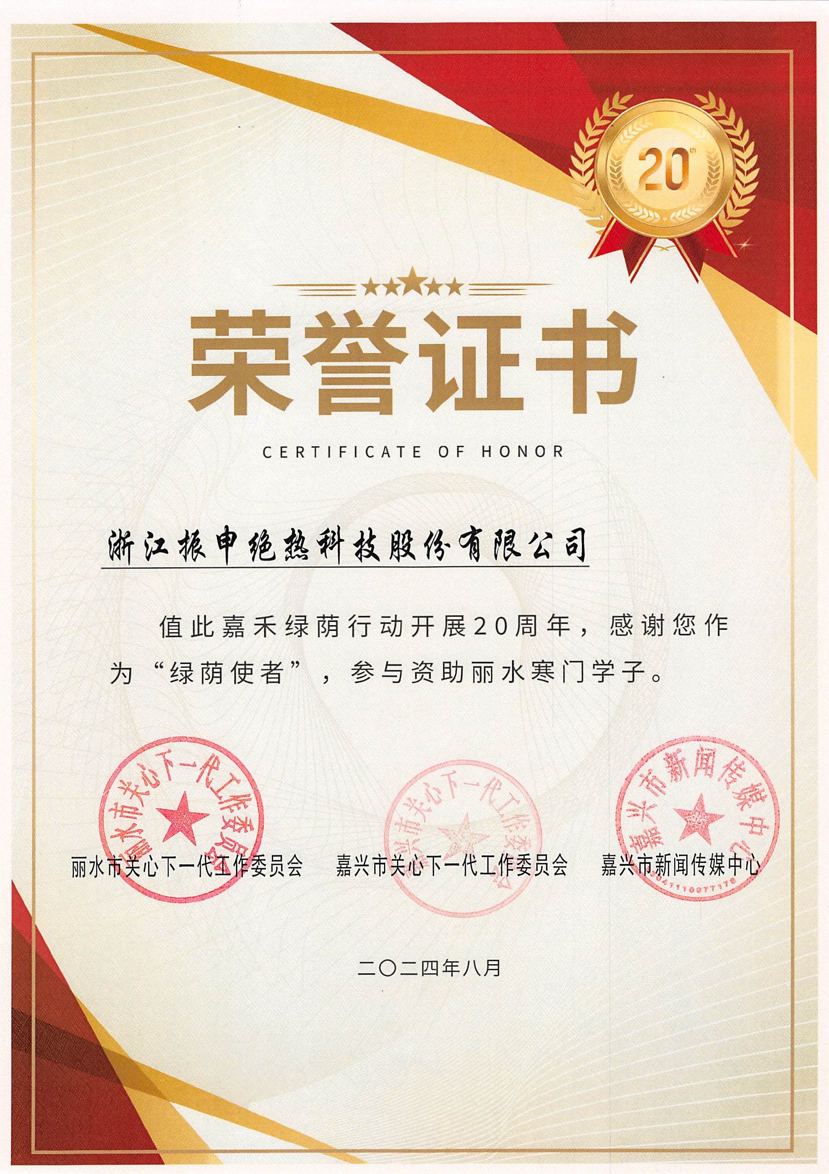 振申絕熱,作為行業(yè)內(nèi)的領(lǐng)軍企業(yè),始終以高度的社會(huì)責(zé)任感和使命感,長(zhǎng)期不懈地投身于公益事業(yè)之中。在我們了解到嘉禾綠蔭行動(dòng)這一具有深遠(yuǎn)社會(huì)意義的項(xiàng)目時(shí),我們毫不猶豫地決定加入這一行列,貢獻(xiàn)出我們的一份力量。