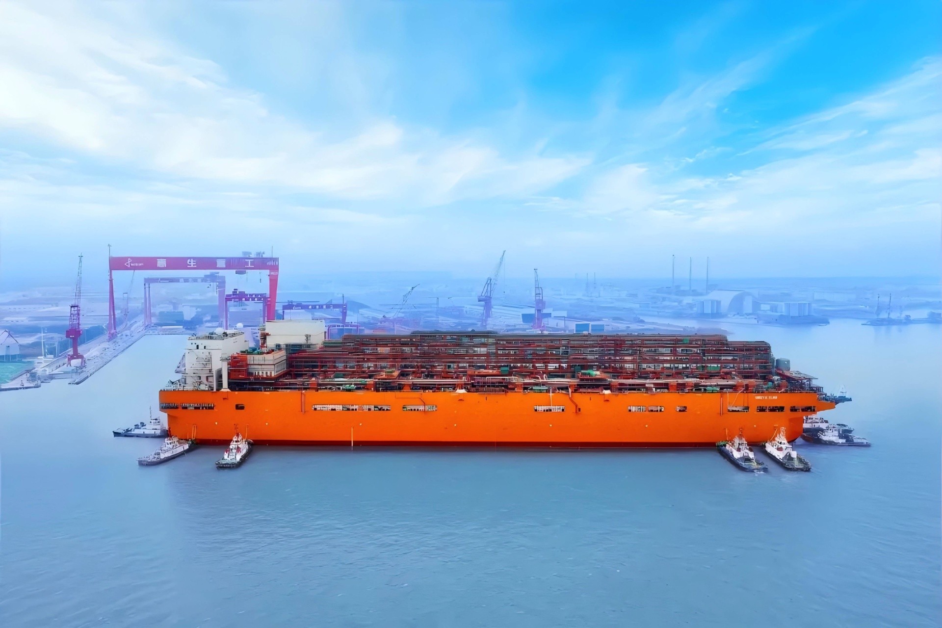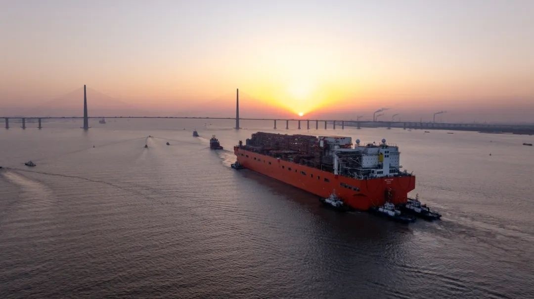 近日,我國首座大型浮式天然氣液化裝置出江,705米拖帶船隊長度創(chuàng)長江歷史之最。在海事部門10艘海巡艇的接力維護(hù)下,由惠生清潔能源建造的我國首座大型浮式天然氣液化裝置“NGUYA FLNG”輪順利離開長江江蘇段,前往舟山船廠碼頭進(jìn)行后續(xù)舾裝作業(yè)。